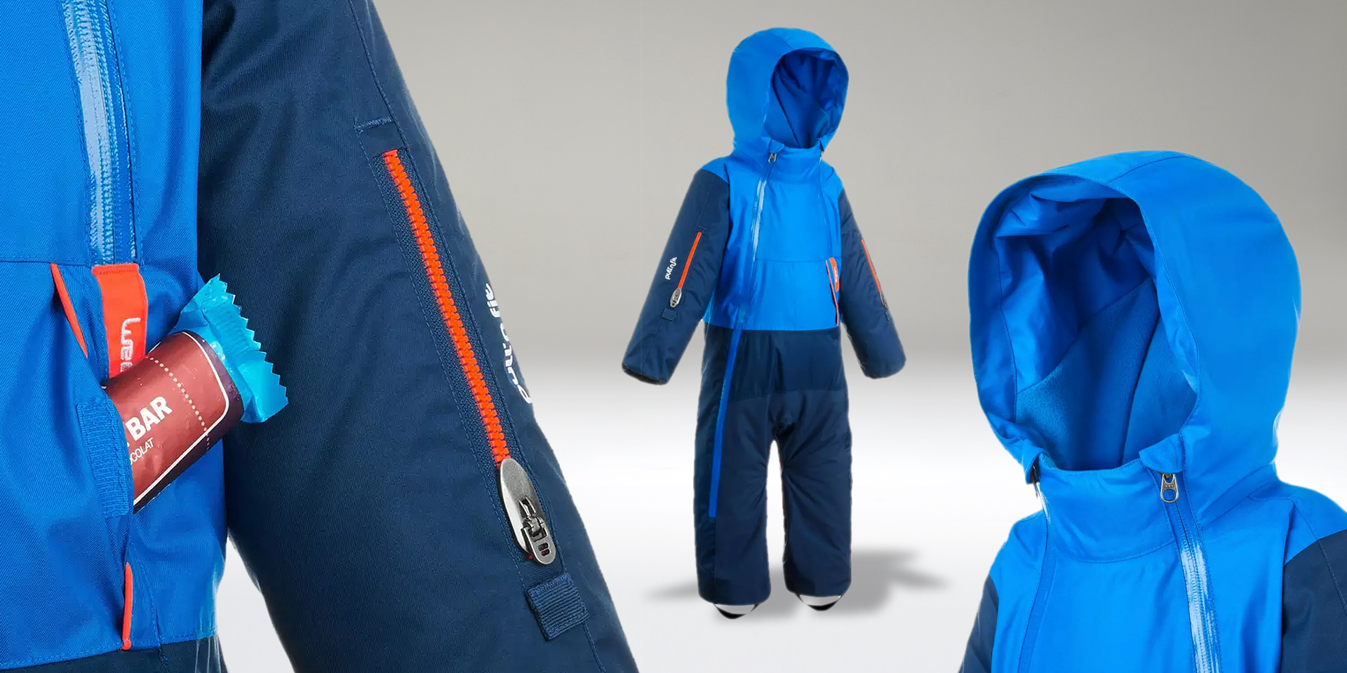 Nous avons également accumulé tous les principes de confort, d’étanchéité, et de résistance, appliqués sur les vêtements adultes de la marque.