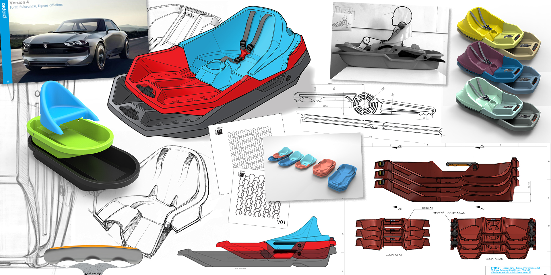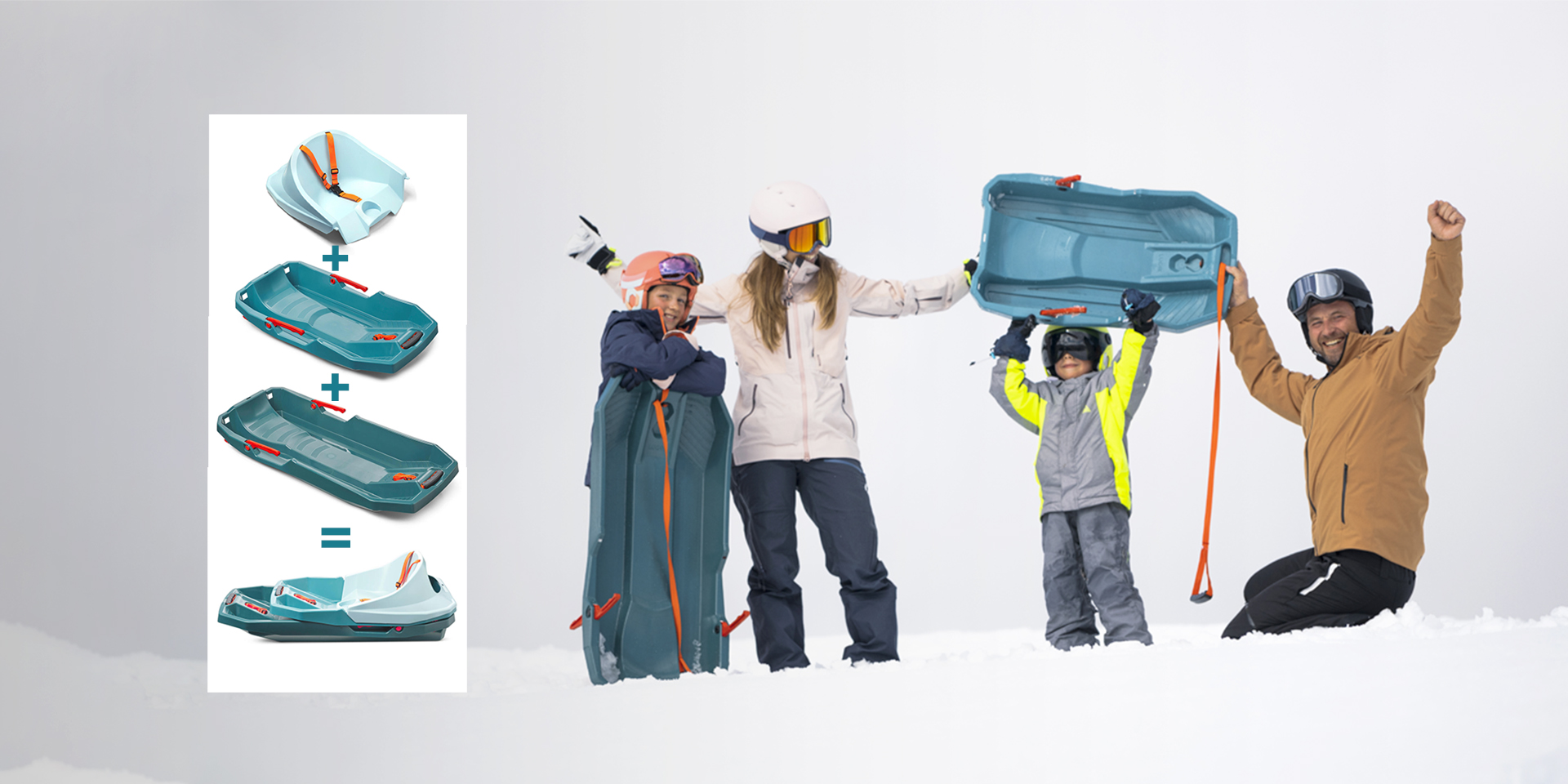 Encombrantes et pas forcément adaptées à la taille des enfants, nous devions concevoir une luge évolutive et désignée pour la morphologie du bébé à l’adulte.