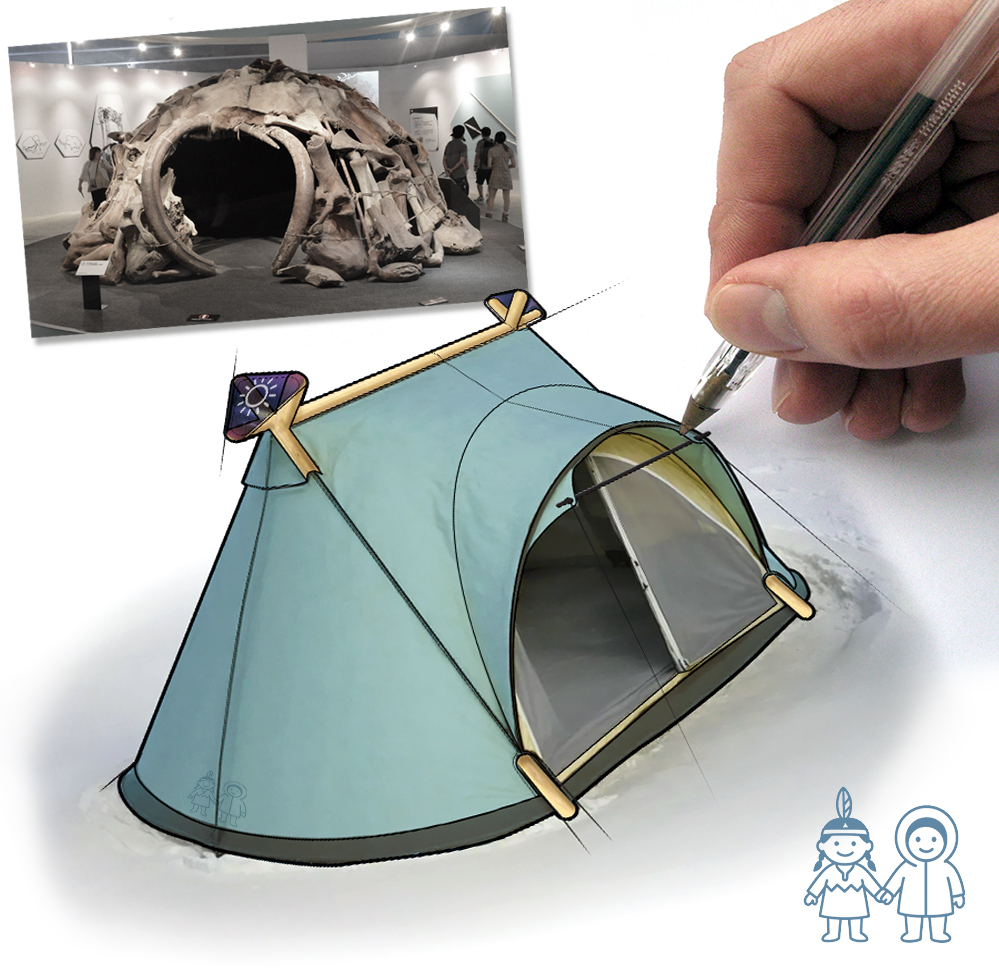 L’os de mammouth, les peaux d’animaux, les branches… Logement idéal pour les chasseurs-cueilleurs et donc nomades que nous étions.