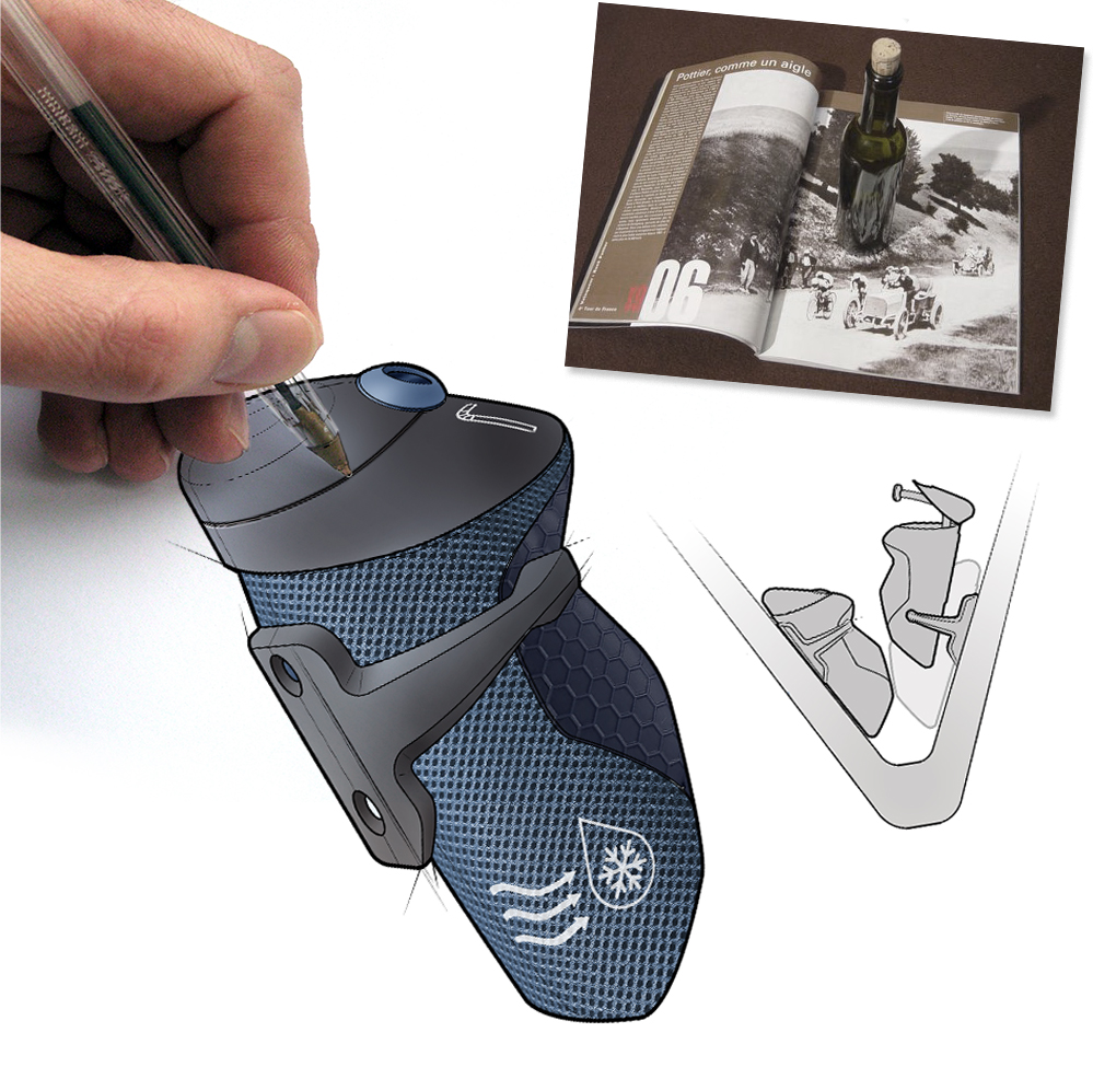 Sur les premiers T.D.F., les coureurs cyclistes utilisent des récipients en verre positionné dans une sacoche accrochée au centre du guidon (ils les remplissent eux-mêmes).