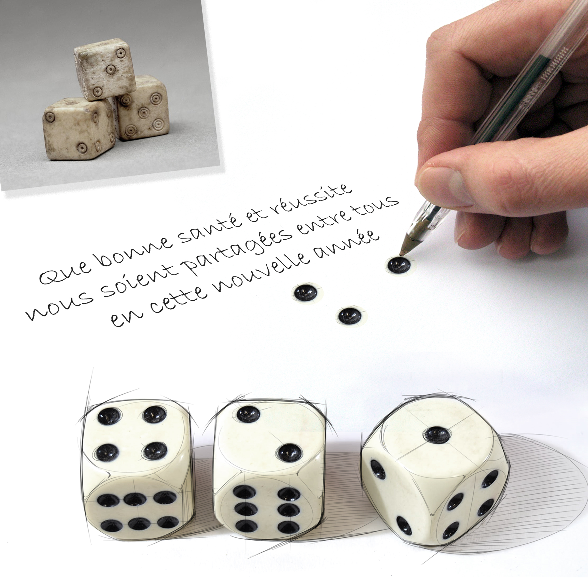 Il n'y a pas de hasards, mais il fait tout de même bien les choses… Je profite donc de ce 4 janvier 21, pour aborder l’histoire des dés. Selon la légende grecque, ils furent inventés par Palamède pour distraire ses compagnons durant les dix années du siège de Troie. À cette époque, des notables pratiquaient le jeu assis sur des peaux de bœuf devant la porte du palais d'Ulysse. Mais en réalité, le jeu de dés est apparu plusieurs siècles avant, car nous le retrouvons dans de nombreux tombeaux égyptiens, mais surtout dans les écrits des quatre livres sacrés de la civilisation de la vallée de l'Indus. Chance, bonheur et réussite à tous pour cette nouvelle année !